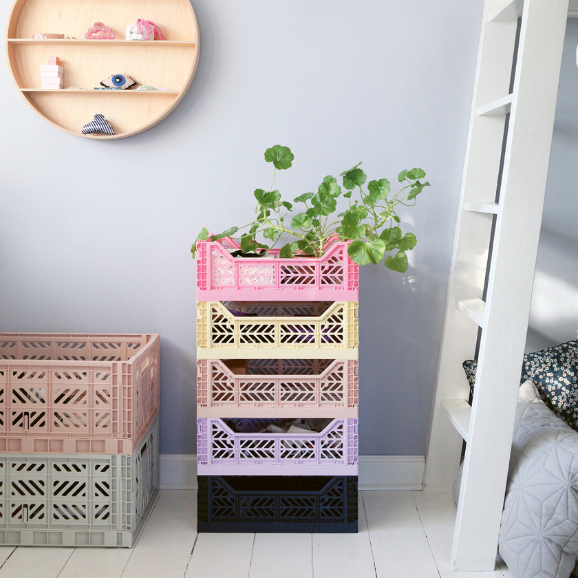 De er spesielt godt egnet til barnerommet, siden de kan foldes sammen, stables og brukes til alt fra bøker og leker til små nips – noe som gjør rommet oversiktlig og lett å rydde.