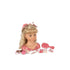 OBS man må ikke bruge krøllejern, hårtørre, curler m.m i håret. Ønsker man at lave lidt lette krøller/fald i håret, kan man sno en lok om fingeren og derved få lidt krøller på den måde. Til dukken medfølger der en masse tilbehør i form af børste, hårspænder, hårelastikker mm. Et super gavehit til timevis af leg.