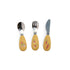 Tåler oppvaskmaskin. Innhold: 1 x gaffel, 1 x skje, 1 x kniv.