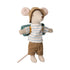 Denne musen er godt forberedt på en fottur i villmarken. Han er kledd for mange dagers vandring og har med seg soveposen sin til netter under stjernene. Han har magneter i hendene. Legg til mer tilbehør fra tursamlingen for enda mer lek.