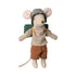 Denne musen er godt forberedt på en fottur i villmarken. Han er kledd for mange dagers vandring og har med seg soveposen sin til netter under stjernene. Han har magneter i hendene. Legg til mer tilbehør fra tursamlingen for enda mer lek.