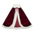 Flott vinrød kappe med hvite plyskanter og satengbånd med stjernedetaljer. Kappen er tilgjengelig i one-size for alderen 3-8 år.