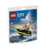 Klar for bølgete politipatrulje-eventyr med LEGO® City-settet Politivannscooter – settet inneholder en minifigur av en politimann med redningsvest, hjelm og håndjern.