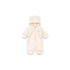 Den fullstendige glidelåslukkingen foran gjør det enkelt å ta av og på dressen, mens det praktiske fold-up designet for hender og føtter sikrer ekstra varme og beskyttelse. Perfekt som yttertøy på tur, i barnevognen eller til en koselig lur. En funksjonell og behagelig heldress som kombinerer varme, mykhet og fine detaljer som både baby og foreldre vil elske. Er laget av 100% resirkulert polyester med bomullsfôr.