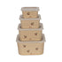 Matbokser til salater, snacks, frukt eller rester som skal oppbevares kjølig. Laget av resirkulert PET-plast, med lokk av polyetylen (PE).