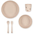Fint spisesett fra Konges Sløjd, laget av PLA/bioplast som er nedbrytbart. Settet inneholder tallerken, bolle, kopp, skje og gaffel, med søte illustrasjoner fra Konges Sløjds fantastiske univers. En flott gaveidé som leveres i en gaveeske.