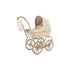 Minnie dukkevognen fra Konges Sløjd er en sjarmerende vintage dukkevogn for de minste, fra 3 år og oppover. Dukkevognen er designet med store hjul som gjør den lett og stabil å trille, og har quiltet stoff med fine, buede kanter på trekket. Rammen er laget av metall og har myke, "svampete" håndtak. Vognen leveres med en myk madrass og en polstret oppbevaringskurv under liggedelen, perfekt til dukketøy og tilbehør. I tillegg følger det med en liten veske til å henge på styret.