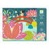 2 illustrerte kort å fullføre (21 x 28 cm), 10 ark med matte, metalliske og glitrende skumklistremerker samt en fargerik trinn-for-trinn veiledning.
