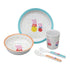 Nydelig gaveeske med barneservise fra Petit Jour Paris med de elskede karakterene fra Gurli Gris-universet. Esken inneholder alt det lille barnet trenger til måltidene: en flat tallerken med blå kant, en skål med oransje kant, et drikkekrus og et bestikksett med skje og gaffel. Alle deler er laget av slitesterkt melamin og dekorert med fargerike motiver av Gurli, Gustav og deres venner, som gjør spisesituasjonen ekstra morsom og innbydende.