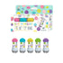 Sett med fem fine prikkmarkører, som er enkle å bruke for små hender. De er lette å håndtere. Det er bare å skru av lokket, få et godt grep om markøren, og så er det klart for å lage kunst med prikker. Fargeputen er hele 1,8 centimeter bred og kan dermed sette mye farge for hver prikk. Fargen er lett å vaske av hvis den kommer på hendene. Det er 30 milliliter i hver beholder. Her er settet med fem flotte pastellfarger.
