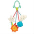Det kan enkelt henges på et aktivitetsstativ, sprinkelseng, bilsete eller barnevogn, slik at babyen har noe å se på og leke med – både hjemme og på farten. Farger, kontraster og sanseelementer stimulerer babyens nysgjerrighet og finmotorikk, mens de koselige lydene gjør leken ekstra morsom.