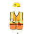 Settet består av vest, sikkerhetshjelm, hammer og tang.