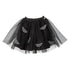 Flott sort saengskjørt med tyll lag og dekorative flaggermusmotiver. Perfekt som utledning som heks til halloween og fastelaven. Skjørtet har strikk i livet og fås i one-size 4-7 år ( 104-122 cm.