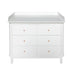 Flott stellekommode med stor stelleplate fra Oliver Furniture's Wood Collection. Stellekommoden er 1 av 4 nye stellekommoder, hvor forskjellen er at de har en sokkel enten i hvit eller eik, med liten eller stor stelleplate. Denne modellen har en hvit sokkel, og har en stor stelleplate som dekker hele kommodens overflate, dvs. det både er plass til stellepute og tilbehør, eller plass til 2 stelleputer hvis det er behov for dette.