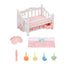 Små babyer og trillinger kan drømme søtt i Sylvanian Families babyseng med uro. Man kan legge en baby eller trillingene til å sove i den lille sengen. Når man vrir på blomsten ved enden av sengen, dreier uroen seg. Gitteret på siden av sengen kan klappes opp og ned, og i skuffene er det plass til babytilbehør. Settet inneholder seng med uro og et sengeteppe. Egnet for barn fra 3 år.