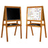 Flott frittstående skoletavle i tre fra Vilac, som på den ene siden har en tradisjonell tavle for kritt, og på den andre siden en magnetisk whiteboardtavle, hvor man kan skrive med den medfølgende tusjen. Det følger med 3 kritt, tusj og tavlesvamp, samt mer enn 100 magneter med bokstaver, hvorav noen har vakre Deyrolle-motiver med dyr.