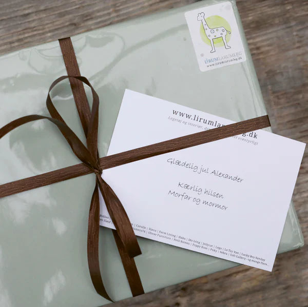 Hos oss har du mulighet til å sende barnas jule- og bursdagsgaver direkte til mottakerne, dersom dere ikke skal feire sammen. Du bestiller enkelt på nett og skriver hilsenen din i kommentarfeltet. Vi sørger for å pakke gaven din pent inn og sender den direkte til mottakeren sammen med et koselig kort med din hilsen.