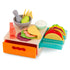 B Food Taco tirsdag inviterer til en morsom og fantasifull lek på kjøkkenet, hvor barn kan lage sine egne små tacos. Settet åpner døren til en verden av meksikansk matglede og gir rom for kreativitet og rollelek. Med ingredienser som krydret kjøtt, friske grønnsaker og guacamole kan barnet mikse og matche på utallige måter og servere sin helt egen taco-meny. Perfekt for lek med familie eller venner og til å styrke både fantasi og sosiale ferdigheter. Fra 3 år.
