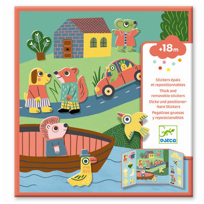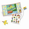 Sett på dyrene i det lille landskapet og lag søte motiver om og om igjen med de smarte, av og på klistremerkene fra Djeco. Perfekt til bil- eller flyturen. Fra 18 mdr.