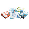 Esken inneholder et tegnebrett og pen samt 24 kort med skitser som barnet kan etterligne. Tegningen kan tørkes av og brukes om igjen.