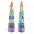 Når alle klossene er stablet måler de 86 cm, og når de ikke er i bruk kan de 10 klossene oppbevares inni hverandre slik at de ikke tar så mye plass.