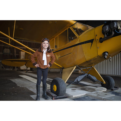 Herlig utkledning som pilot, i beste Amelia Earhart stil fra Great Pretenders. Kostymet inkluderer pilotjakke, myk hjelm, skjerf og pilotbriller. Fås i str. US 5-6 år .