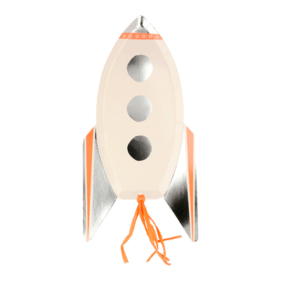 Flotte papptallerkener fra Meri Meri med designet som et romskipt. Ideelle til barnebursdager med space-tema. Inneholder 8 tallerkener som måler 16.5 x 31.8 cm.