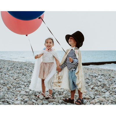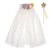 Vakkert kostyme fra Meri Meri som forvandler et hvert lite barn til en fortryllende fe. Settet består av en vakker kappe, som er overstrødd med stjerner og har fine fargerike pompomer i halsen. Det medfølger en festav med gullstjerne. Fås i one-size fra 3-6 år. Måler 45.7 x 71.1 cm