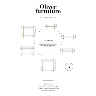 Møblene fra Oliver Furniture er produsert etter gjeldende danske standarder, og er testet og godkjent i følge EN 71-3, EN717-1 og TÛV. Overflatene er behandlet med vannbasert interiør-lakk, og har en flott finish.