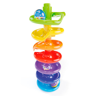 Fin liten spiraltårn kulebane fra italienske Quercetti. Kulebanen er laget spesielt til de minste fra 1 år . Med denne kulebanen kan barnet oppelve akselerasjon, når kulene suser fortere og fortere gjennom spiralen. En riktig bra gaveide som styrker gripeevne, øye-håndkoordinasjon og finmotorikk. Inneholder 7 deler og 3 kuler med små perler som rasler. Fra 1 år.