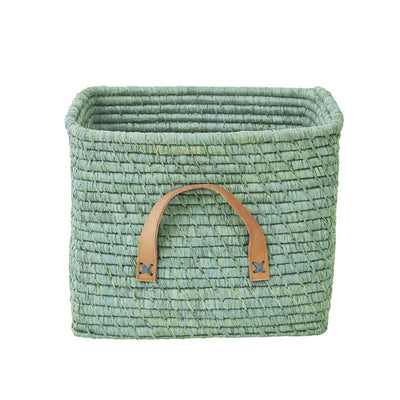 Flott bastkurv i fargen mint med lærhanker fra Rice. Passer inn i rommene i mange av de "klassiske" reoler til barnerommet. Kurven er romslig og god til oppbevaring av leketøy, klær eller annet som skal være lett tilgjengelig, men samtidig gjerne må se pent og dekorativt ut. Alle kurve er håndlaget og kan variere en smule i fargen.